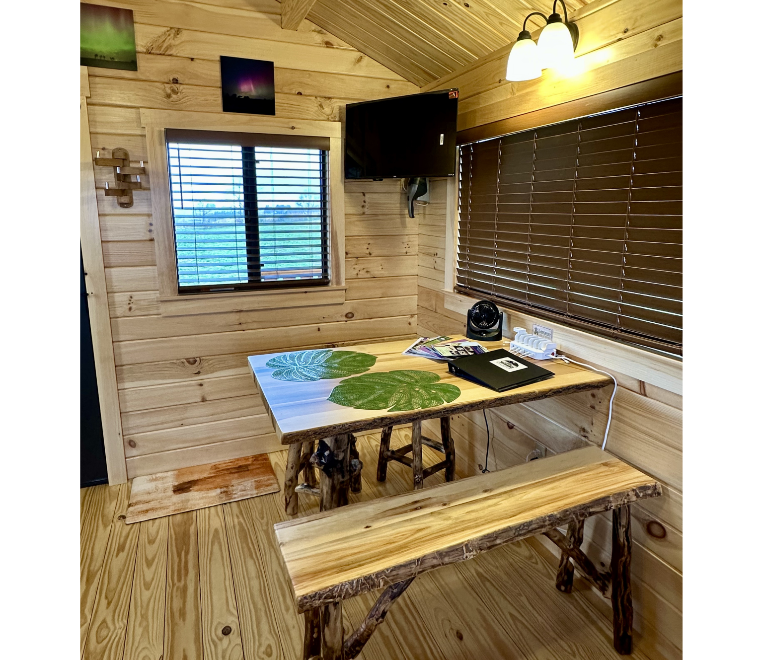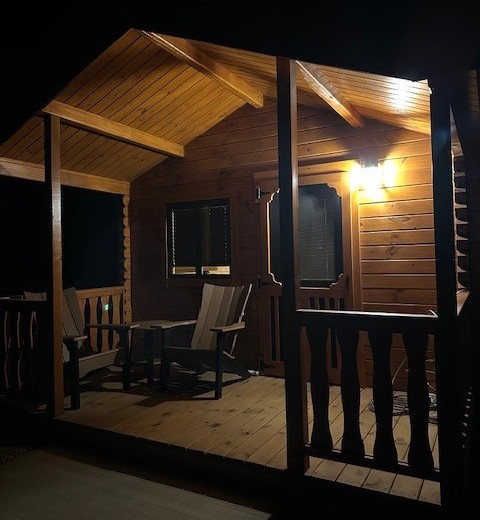 Step outside onto your cabin’s small porch and take in the breathtaking views. Watch as the day fades away into a vibrant sunset, and stargaze under the clear, dark skies as night settles in. It’s the perfect spot to savor your solitude and connect with the natural world around you.